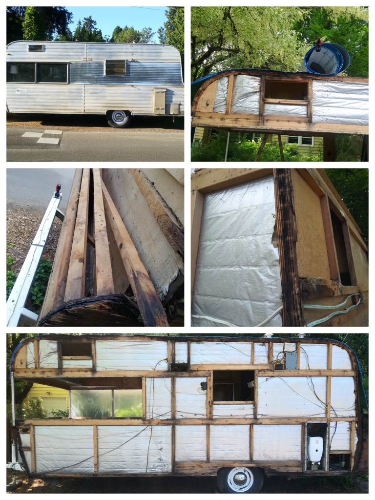 In undressing Petunia, I’m removing the aluminum skin bolt by bolt, staple by staple, panel by panel. It’s grueling, dirty, gritty work. I’ve made some intriguing discoveries along the way, however. Something called “Butyl Tape” comes to mind, but more on that another day.
