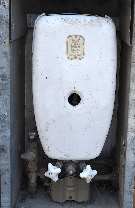 Oh, the things I found under the surface! Most delightful among these is this awesomely-awesome cool-cat, on-demand, hot water heater. Dig those knobs! I’m in love with this water heater. (Assuming it works, that is.)